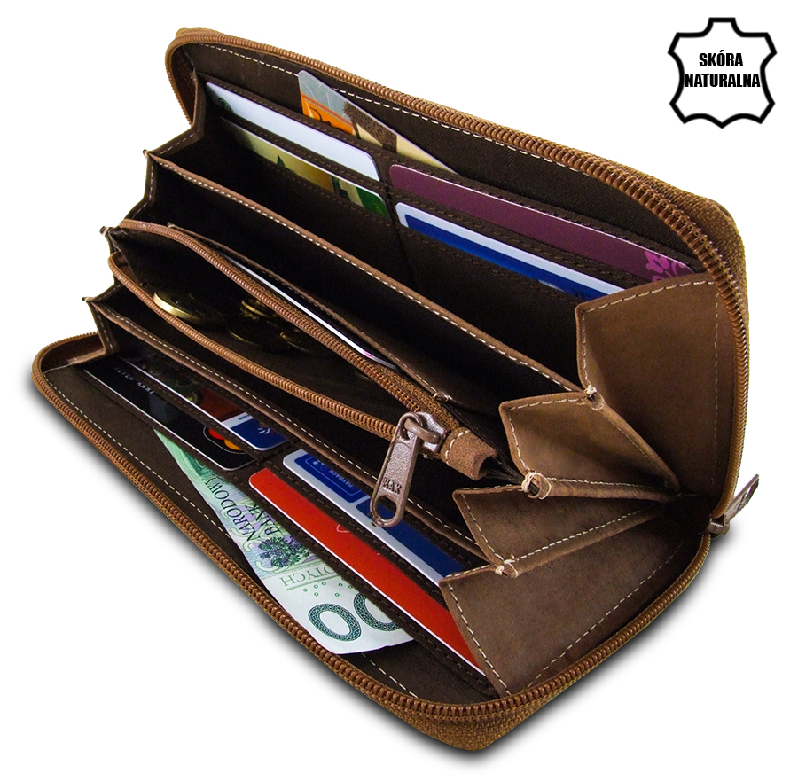 - Kieszeń na bilon zamykana na suwaczek