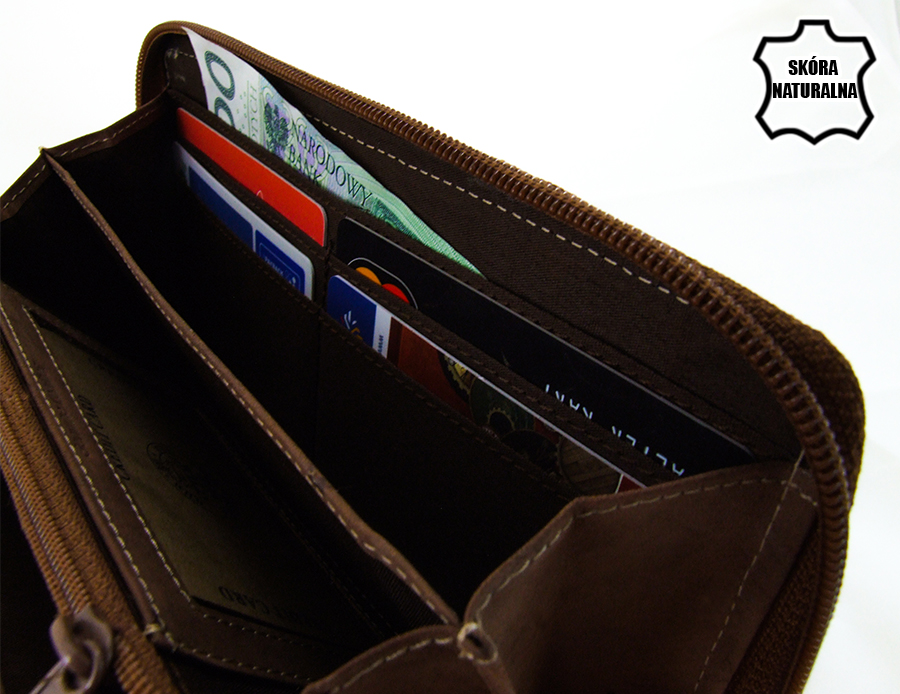 - Kieszeń na bilon zamykana na suwaczek
